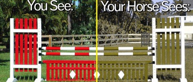 IL COLORE : il cavallo non percepisce tutta la gamma cromatica che vede l’occhio umano, essendo, la sua, una vista dicromatica, sui toni del blu e del giallo, che generano anche sfumature verdi e grigie poco distinguibili tra loro. Ma non sono tanto i colori di un ostacolo a distrarlo, quanto la luce che esso riflette; questa sarà maggiore nel caso di colori chiari o sgargianti.