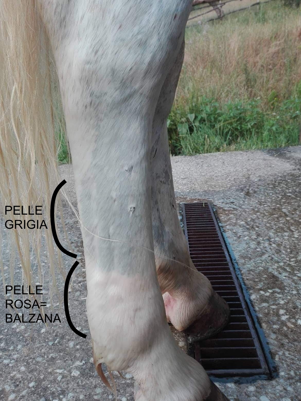 Sì! Ma come si riconoscono? Dalla pigmentazione della pelle in corrispondenza degli arti: il cavallo grigio ha la pelle grigia, quindi se vedete che diventa rosa, lì comincia la balzana.