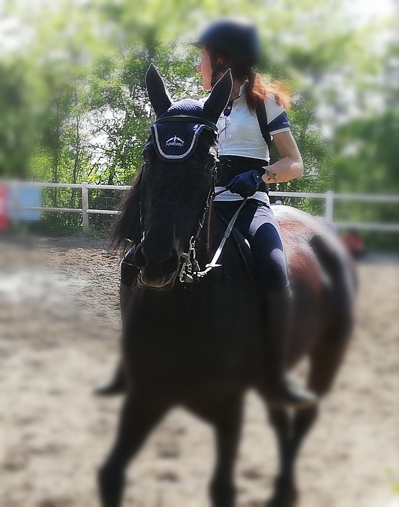Tatiana frequenta il mio maneggio da molto più tempo di me ed è la mamma di Ginevra, una ragazzina di 11 anni, un po’ schiva e silenziosa, ma che si accende come una lampadina appena sente la parola ‘cavallo’; anche se non deve far lezione, adesso che la scuola è finita è spesso in maneggio, sempre pronta a dare una mano e quando non c’è bisogno di aiuto, la trovate alle sbarre dei box a coccolare tutti i cavalli, uno dopo l’altro.