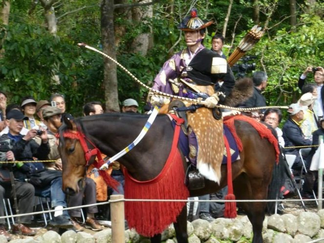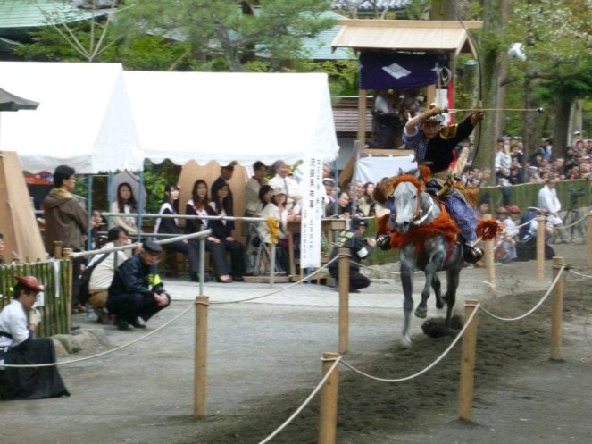 Lo Yabusame è una antica pratica giapponese in cui viene richiesta al fantino-arciere l’abilità di colpire 3 bersagli in sella a un cavallo lanciato al galoppo.