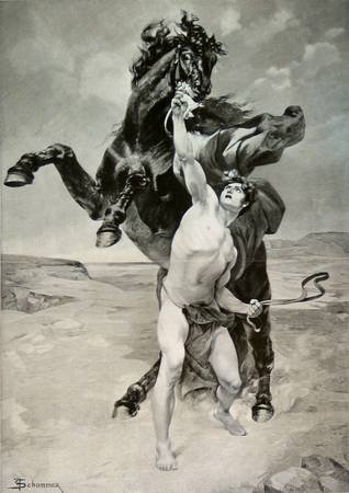 “…Filippo e i suoi rimasero dapprincipio silenziosi e preoccupati; quando però Alessandro voltò il cavallo e ritornò gioioso e fiero, tutti alzarono un grido di giubilo; il padre addirittura pianse di gioia e, quando Alessandro smontò, lo baciò sulla testa dicendogli : “Figlio, cercati un regno che ti si confaccia : la Macedonia è troppo piccola per te…” (Plutarco – Vite parallele)