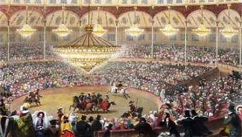 Il circo moderno nasce nel 1700 a Londra, quando un ex sergente della cavalleria britannica, Philip Astley, fondò l’Astley’s Amphitheatre: l’ambiente era costituito da una pista circolare di 13 metri di diametro attorno a cui si sviluppavano a 360 gradi gli spalti per gli spettatori paganti. La pista circolare fu preferita al rettilineo poichè si era osservato che era più facile fare numeri acrobatici quando si galoppava in un cerchio stretto.