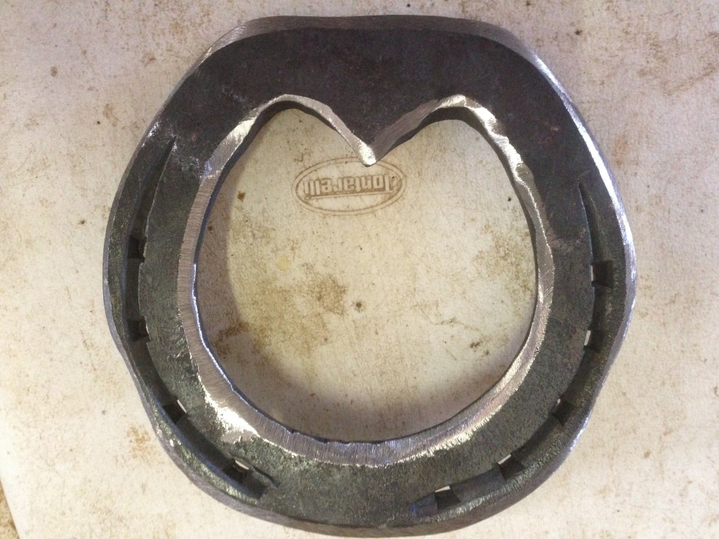 Ferro anteriore per piede colmo, faccia inferiore. Forgiato a mano dalla verga