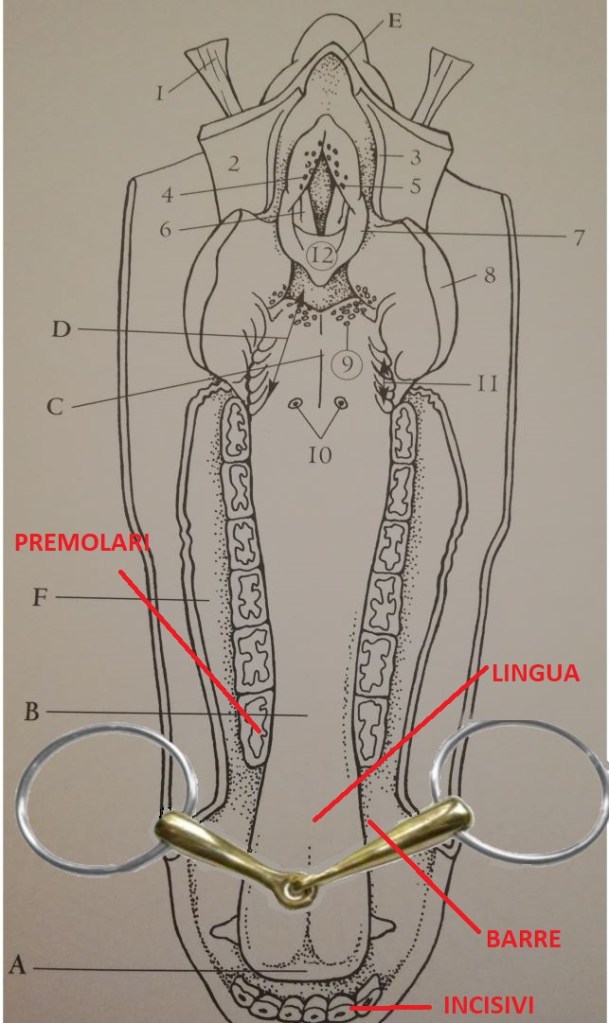 Osserviamo quali sono i punti di contatto diretto con la bocca del cavallo: