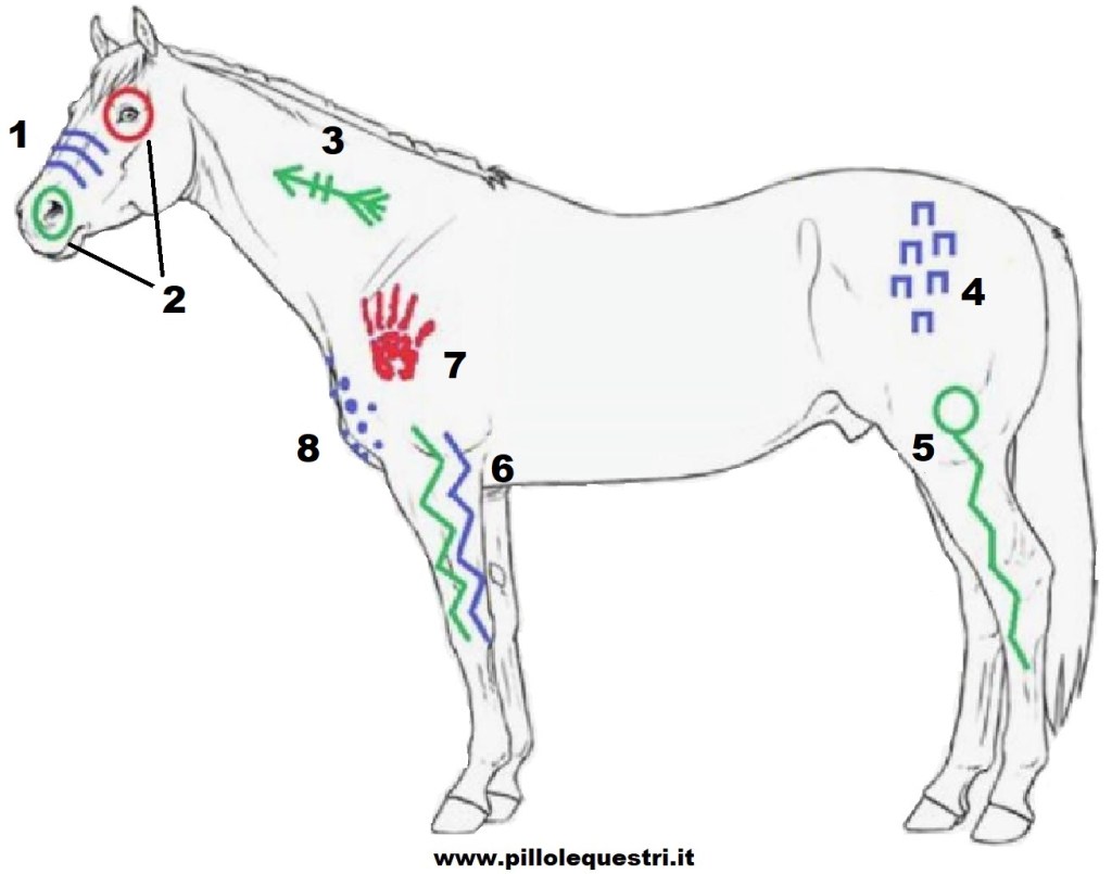 - Cerchi attorno agli occhi e/o alle narici servivano ad amplificare i sensi del cavallo.