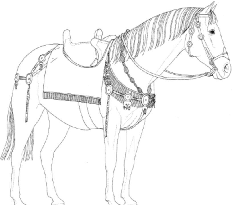 I finimenti, insieme a scheletri che fanno intuire si trattasse di cavalli dalla presenza imponente, lasciano intendere che ci si trovi davanti ad importanti animali di rappresentanza, di razza selezionata e utilizzati per lo più durante le parate.