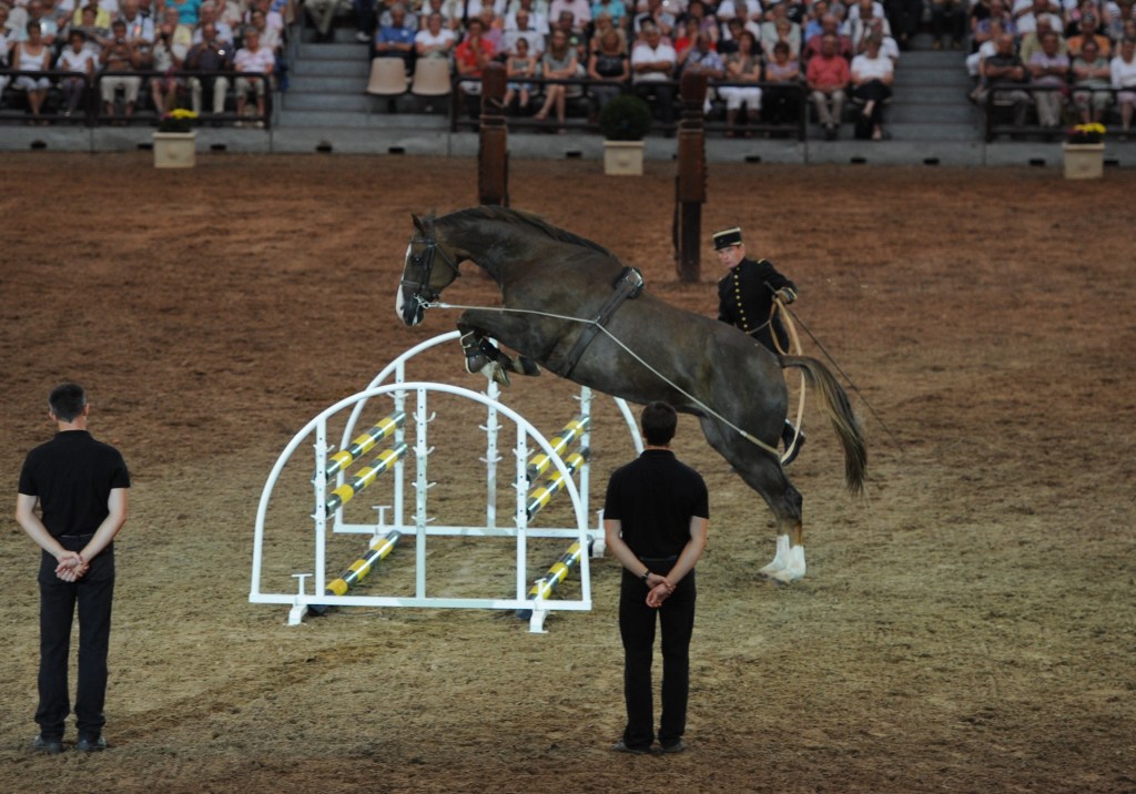Nelle esibizioni del Cadre noir, forse gli esercizi più spettacolari sono i cosidetti sauts d’école o airs relevés, in cui il cavallo, montato o condotto a mano, si stacca da terra: