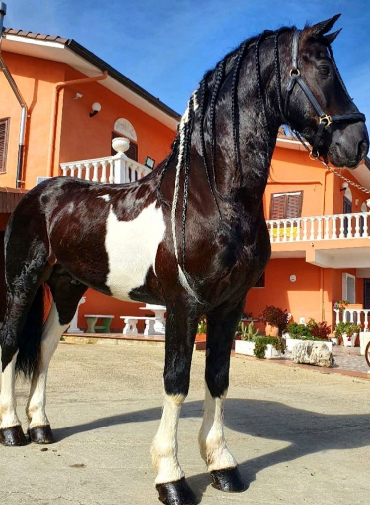 - il manto preferito è quello paint bianco e nero; anche se ci sono stalloni e fattrici completamente neri che vengono comunque registrati, lo standard di razza prevede almeno due macchie bianche sul corpo di almeno 10 cm di diametro l’una.