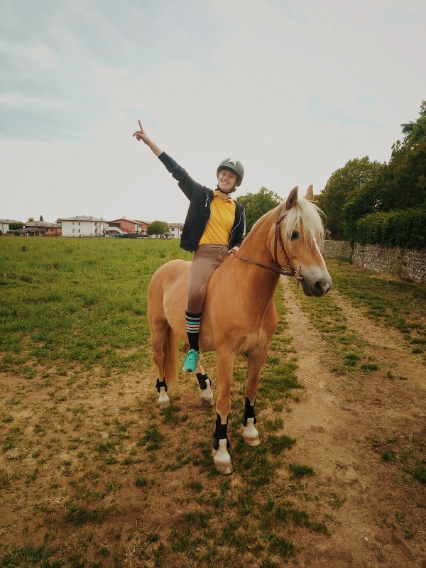 Ma prima conosciamo Marta un po’ più da vicino! Marta si definisce “studentessa, amazzone, futura veterinaria;. è infatti al 4°anno di veterinaria all’Università di Parma e ha passato moltissimi anni della sua vita immersa nel mondo dei cavalli. Comincia a prendere lezioni di equitazione a 7 anni e si appassiona soprattutto ai mounted games. Nel 2018 poi comincia il suo percorso universitario che la porta ad allontanarsi dalla pratica equestre anche se, precisa, appena torna a casa il maneggio è una tappa fissa e obbligata. “Non so ancora dire cosa esattamente mi abbia spinto a prendere questa strada. Sicuramente dietro mi porto una grande passione per i cavalli, in più mi piace la medicina e mi affascinano le materie che studio, soprattutto quelle degli ultimi anni, molto più pratiche rispetto a quelle del biennio; ma penso che la cosa principale sia l’idea di poter aiutare una vita, di darle un futuro migliore.”